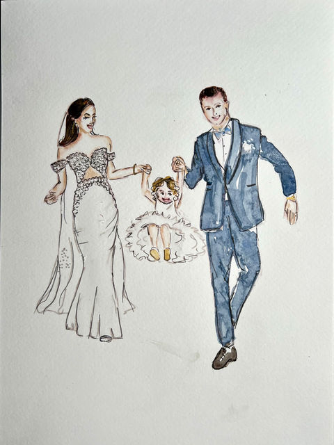 Eine wunderschöne und personalisierte Braut- oder Hochzeits-Illustration ist das perfekte Andenken an einen besonderen Tag. Ich zeichne die Gäste und das Brautpaar während der Hochzeit oder fertige später einzigartige Zeichnungen im Story Of Gold Atelier.